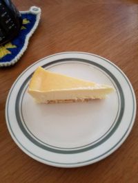 カットしたところです。 下にうすーくスポンジケーキっぽいのがありますが、ほぼ全部チーズケーキ(*´▽`) クリームチーズの味も濃厚でおいしかったです。