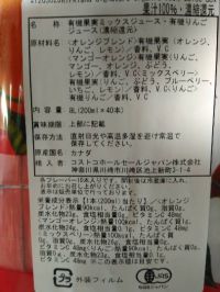 KS 100%オーガニックジュースを購入しました。 オレンジブレンド、マンゴーオレンジ、ミックスベリー、リンゴの4種類×10本で40本入りです。 価格は1998円で1本あたり49.95円でした。 私はジュースを飲まないので旦那の感想ですが、日本の100%ジュースみたいに普通に美味しい♪との事です。
