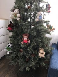 今日クリスマスツリーを出して飾ってみました^_^ 我が家は今年初めてのツリーを購入したのですが、210センチあります。ナチュラルな感じでヌードツリーもとっても素敵だったんですが、このぬいぐるみオーナメントがピッタリでした! クマちゃんタイプと、いろんな動物タイプと2種類悩んで悩んで決められなくて両方購入したのですが、やっぱりどっちもらすっごくすっごく可愛いです^_^ ちょっと大きめのぬいぐるみオーナメントなので、ツリーも180センチ以上の物がバランスが良いかなと思います。 クマちゃんかいろんな動物かどっちかにすれば、150センチくらいのツリーだったらなんとかバランスとれるかも知れません。 電飾や他のオーナメントやツリートップはまだ付けてませんが、このままでも十分かわいいです!箱に入れたまま飾ってもかわいいです!飾ってる間も見てるだけでかわいい連発します。 ただ、箱にむき出しでぬいぐるみが入ってて保管する時にどうしようかなって考えてます。一個ずつビニールに入れて箱に入れて、それから箱ごとまた大きな袋に入れようかなぁ。。 飾ってる途中で気づいたんですが、UFOキャッチャーとかのヒモ付き小さめぬいぐるみに、フェルトなんかで帽子やマフラー巻いたり工夫すればオーナメントになりそうかもと思いました。手作りが得意な方はもうとっくにやってらっしゃるかもしれませんが。。 とにかくかわいいという事をお伝えしたいです^_^