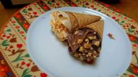 ヘーゼルナッツフレーバーと ミルクチョコフレーバー各15本ずつで30本入り1798円! 約10センチくらいの大きさのジャ○アントコ○ンみたいな感じでしょうか!?チョコレートとナッツ達でコーティングされてます! 中のチョコレートクリーム!なんてふわふわなの!?明らかにそのお菓子とは食感が違います♡うんま~いです。お菓子のコロンの中身みたいにふわふわ過ぎずマセズのトリュフチョコみたいにみっちりでは無く、その中間って感じでしょうか!めっちゃ美味しい~( ゚Д゚)ウマー(*´༥`*)ウマシッ