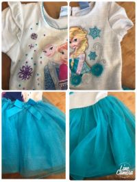 続きです! 値段も1998円、毎年2000円弱で買っています。 個人的にはTシャツ部分は一昨年(左)が一番良いです。 首回りにステッチがあり、首がのびのびになりません。 キラキラのストーンも洗濯に強く、子供が引っ張っても取れにくいです。 去年のTシャツ部分はあまり伸びず見た目はちょっと高級感がありますが、子供は自分で着にくいそうです。 スカート部分はチュールの切りっぱなしになっているので、何度も洗濯して裾が丸まって来たり、ラメが薄くなっています。 今年のシリーズはその点良くなっているので、続きます。