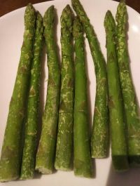 袋から出して見ました。凍ったままの状態です 想像していたよりも太く意外とちゃんとした普通の太さのアスパラです。