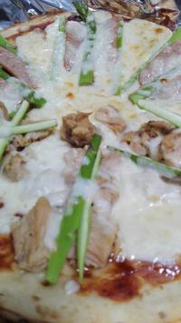 晩御飯もピザ~d=(^o^)=b 付属のトマトソースに ・アスパラ+ウインナー ・アスパラ+マグロオリーブオイル漬 そして上からモッツァレラシュレッド~ アスパラは生のまま乗せましたが、丁度良く蒸されて甘みがありました。(´-`*) (根元の方は縦に4つ割りで) 美味しゅうございました。