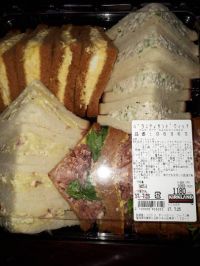 地域版にも書いたのですが、こちらにも失礼いたします。 私もバラエティーサンドイッチ購入しました(^ ^) チキンサンドは玉ねぎのサクサクした歯ごたえがあって美味しかったです! セロリのサクサク感も加わっていると思いますが、セロリ苦手な私も味など気にせず食べられました(o^^o) タマゴサンドは、フードコートのローストビーフサンドに塗られていたカラシが入っていた気がします。たしかに言われてみたら、塩っ気が若干強かったかな(^_^;)←濃い味好きの愛知県民としてはアリでしたが… 私が気になったのはポテトサラダなんですが、生のニンニクスライス?が入っていませんでしたか?ジャガイモと思っておもいっきり噛んだら口の中がすごいニンニク臭に(>_<) 使われている食パンも美味しかったです(^ ^)