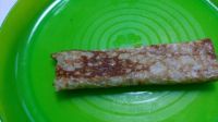 冷凍しておいて、熱したフライパンで両面を軽く焼く。 香ばしくなってウマー(≧∇≦)b 家族に大好評でした♪ お皿の色がイマイチで美味しそうにみえない…しかも食べかけ(;・д・)