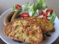 ツイストブレッドでフレンチトースト。 色々工夫して食べた大きなフランスパン、ツイストブレッド(私が買ったものは長さ約45㎝、重さ約525g)ですが、気が付けばあっという間に賞味期限^^; そのまま食べるにはもう美味しくなくなってしまったツイストブレッド。 そうだ!パンペルデュにしよう。 パンペルデュ・・・? 最近はパン屋さんでもこの名前をよく見かけるようになりました。 答えはフレンチトースト。 パンペルデュとはフランス語で「失われたパン」という意味で、失われた、すなわち時間が経って固くなってしまったパンを美味しく食べるための料理なのだそうです。 そんなわけで、昨日のブランチはパンペルデュ。 卵と牛乳を混ぜた卵液に、厚さ2㎝位にカットしたツイストブレッドを付けておき、バターでこんがりと焼き上げました。 ソーセージとサラダに合わせたかったので、砂糖抜きのパンペルデュです。 バターで外はカリッ、卵と牛乳で中はしっとり(゚д゚)ウマー ソーセージやサラダともよく合います♪ 時間が経ってかたくなっていたとはいえ、元々そのままでも美味しいツイストブレッド、パンペルデュにして美味しくないわけがありません。 でもパンペルデュと言えば、やっぱり甘いのも食べたいなー( ´艸`)