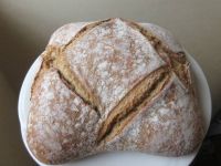 ●スペルト小麦ブレッド(Miche Epeautre) (以下ポップより) スペルト小麦は数千年前にのガウルのローマ占領中にフランスに持ち込まれました。 スペルト小麦、麦芽大麦、麦芽小麦のスペシャルミックス ・・・複数の小麦粉の独特な味わい・・・ これも測ってみました(笑) 重さ約504g 縦約17㎝ 横約17㎝ ライ麦&レモンほど茶色ではありませんが、ツイストよりは少し茶色のパンです。 3種類の中では一番酸味や香りを感じました。 酸味があるのでバター等乳製品と合わせたら美味しそうだと思いました。 小麦の原種にあたるスペルト小麦は人工的な手が人工的な手がほとんど加わってないため、身体にとって必須の栄養素が多い、小麦アレルギーを発症し難い等、多くの特長があるそうです^m^