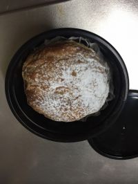 レポ冷凍編です。 日曜日にジップロックコンテナーに1ついれてそのまま冷凍庫にいれました。 先ほど冷凍庫から出してすぐに一口。クリームがカッチカチでかたいです。外のクロワッサン生地も柔らかく、市販のシューアイスのような感じ。中身のクリームの甘さもさらにさっぱりに感じました。 元々シューアイスが好きじゃない事とカチカチすぎてかじれないのでそのままオスターコンベクショントースターの上段にアルミホイルをしいてクロワッサンシューをのせ上にアルミホイルをかぶせてトースターモードで3番(4分50秒)で焼き2分程中で余熱焼きをしました。 上の粉糖は溶けており少し焼き色はついてましたが焦げてはいなく、食べてみると周り(上下を除く側面)はパリパリでクロワッサンのようでした!クリームは上下、側面に近い位置は柔らかいくらいで冷たく中心はまだカチカチでした。 生地はパリパリ、クリーム冷たとろーんが私の中では1番理想でまだ1つ冷凍庫に入ってますので次は少し長めに焼いてみたいと思います。 取り急ぎ冷凍レポでしたm(_ _)m