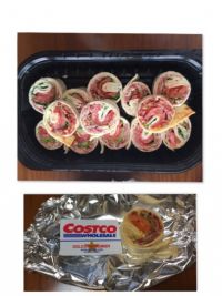 本日ブリトーを購入しました-。 4本入りです。 ドロっとしたペースト状のアボカドがたっぷり。 基本的にはトマトソースの味ですが、香辛料のピリッとした辛さがありました。 辛さが苦手な私ですが平気なくらいです。 調理方法としてはレンジでチンとありましたが、パリっとした生地が好きなのでトースターで焼いて食べてみました。 写真失敗理由→→ 本当は焼いて半分に切ってお皿に盛った写真で断面図も含め載せるつもりだったのに、削除してしまいましたヽ(;▽;)ノ 次食べる時にまたチャレンジしますね☆ チキンのスライスやお豆ちゃんが入っており、うちのチビさんはチキンばかり食べてました(´`:) 過去のコス子さんの商品レビューにもありますが、一人で一つはかなりキツイです(^◇^;) ビール欲しくなりますね~。 そして微妙に入っているバターライス(ご飯粒)。 これもパックによって当たり外れがあるのかな~。わかりませんが(^^;) 後ほど原材料の写真UPしますね♪