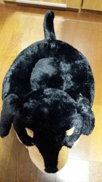 可愛い∪・ω・∪ クマちゃんもパグちゃんも可愛かったけど、ダックスちゃんを選びました。 試しに横向きで枕にした所、私にはちょうど良い感じでした( ̄∇ ̄)ゴメンヨダックス ウチのおチビさんは、またがって座ったりしてましたが、「かわいそう」と言いだしぬいぐるみ扱いになっております(o^^o) いや~、この手触りやめられませんね(笑)