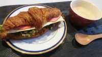 私も今朝、半分に切ったクロワッサンをトースターで軽く焼いて、レタスとハムとチーズでサンドウィッチ作って食べてみました(^^)粗びきコショウを少し振って‼ これはおいしい~( 〃▽〃)ヤバーイ!!笑 外はサクサク、中はしっとりふんわり?(上手く表現できませんが)にレタスのシャキシャキとハムチーズの食感も加わって、いろーんな食感が楽しめます!個人的にはコショウがとても重要で、単調なクロワッサンの味を引き締めてくれます! ホントに2個食べちゃう勢いですね!シチューもあったので1個にしましたけど!