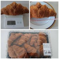 昨日、新クロワッサン買ってみました!! 前橋倉庫店利用ですが、多少の違いはあるものの、一個あたり縦11㌢×横21㌢、重さ65㌘でした!店舗によって大きさも重さも結構違うんですね‼確かに以前のものよりサクサクしてる気がします!一個食べ終わる頃には生地がお皿を飛び越えて、床にまで散乱していました(^^;そして、あの丸っこいのより、やっぱりこのビジュアルの方がおいしそうに見えますよね♪